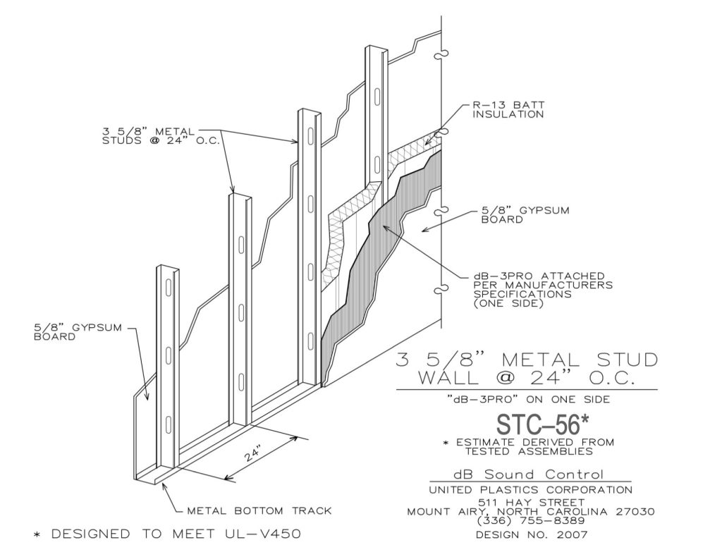 *STC test 25 ga. 24” oc, R-13 ins, 5/8 gyp each side w/dB3 Lite one side